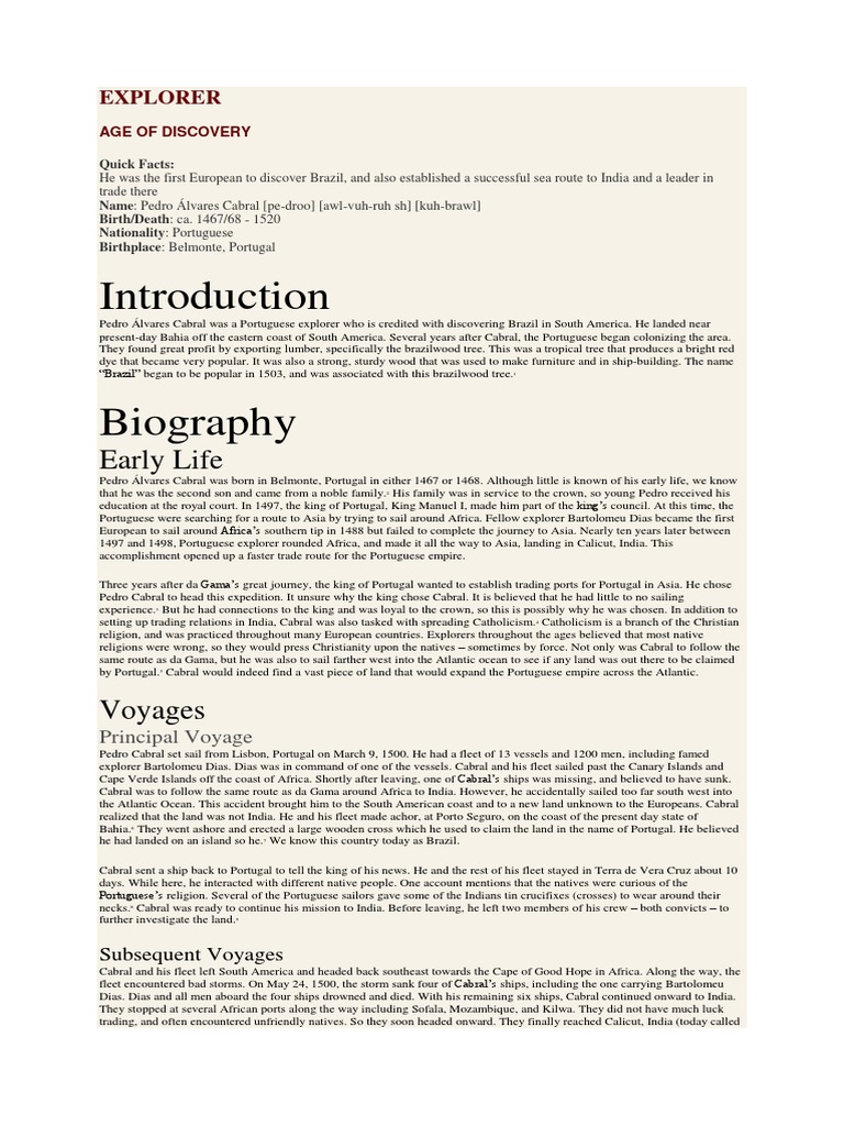 Pedro Alvares Cabral And The Discovery Of Brazil Scihi Blogscihi Blog from scihi.org The first aerial crossing of the south atlantic was made by the portuguese naval aviators gago coutinho and sacadura cabral in 1922, to mark the centennial of brazil's independence. ˈpeðɾu ˈaɫvɐr(ɨ)ʃ kɐˈβɾaɫ or brazilian portuguese: Die verkehrsinformationen zu cabral liefern ihnen einen überblick über staus, unfälle und. Jump to navigationjump to search. First aerial crossing of the south atlantic. Cabral and his fleet of 13 ships continued the voyage back around the coast of africa onto india. This is part 1.so watch out. 1520) was a portuguese nobleman, military commander, navigator and explorer regarded as the european discoverer of brazil.
